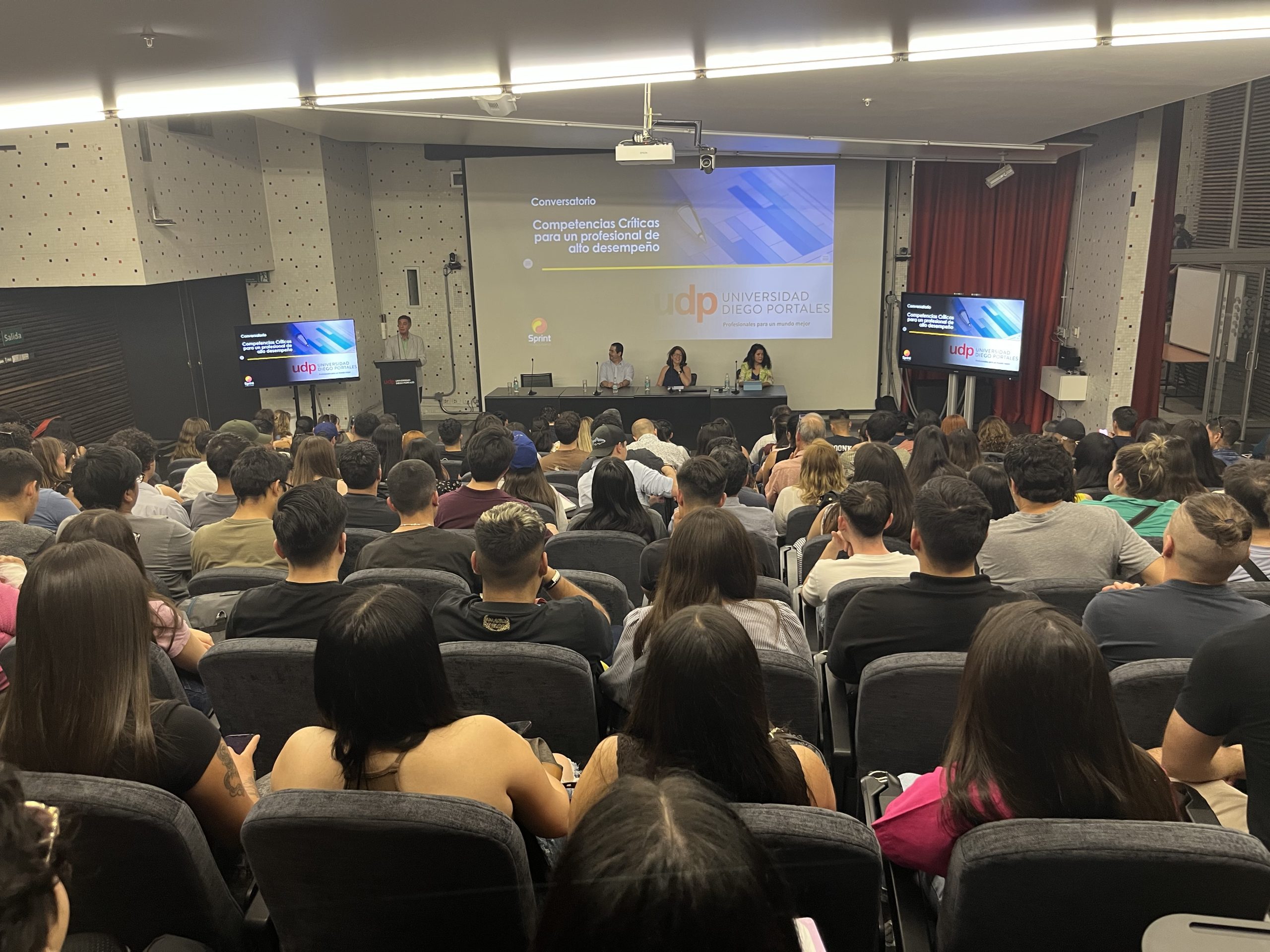 La actividad se realizó el jueves 15 de enero en el auditorio de la Facultad de Ciencias Sociales y se enmarcó en los cursos de verano impartidos por las carreras vespertinas de la UDP. El encuentro, presentado por Sprint Consultores, reunió además a docentes y directivos de las Escuelas Vespertinas, y tuvo como propósito vincular a los estudiantes con las competencias transversales que hoy demanda la industria, a través del diálogo directo con ejecutivos de alto nivel.